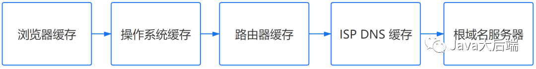 在前面所有步骤没有缓存的情况下,本地 DNS 服务器会将请求转发到互联网上的根域,下面这个图很好的诠释了整个流程: