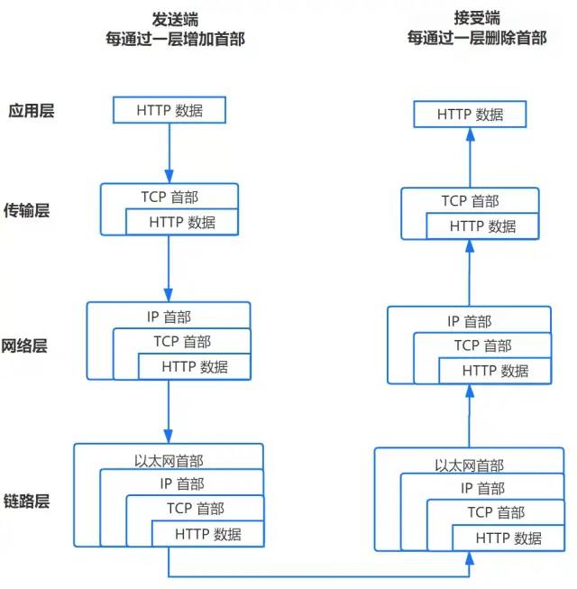 TCP/IP 分为四层,在发送数据时,每层都要对数据进行封装: